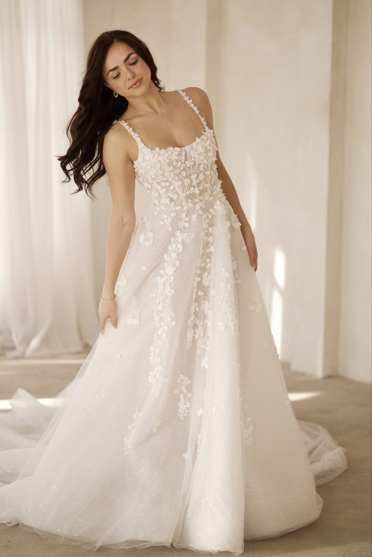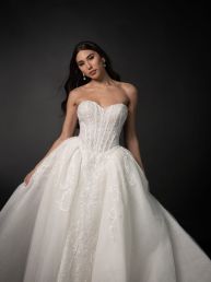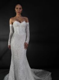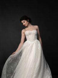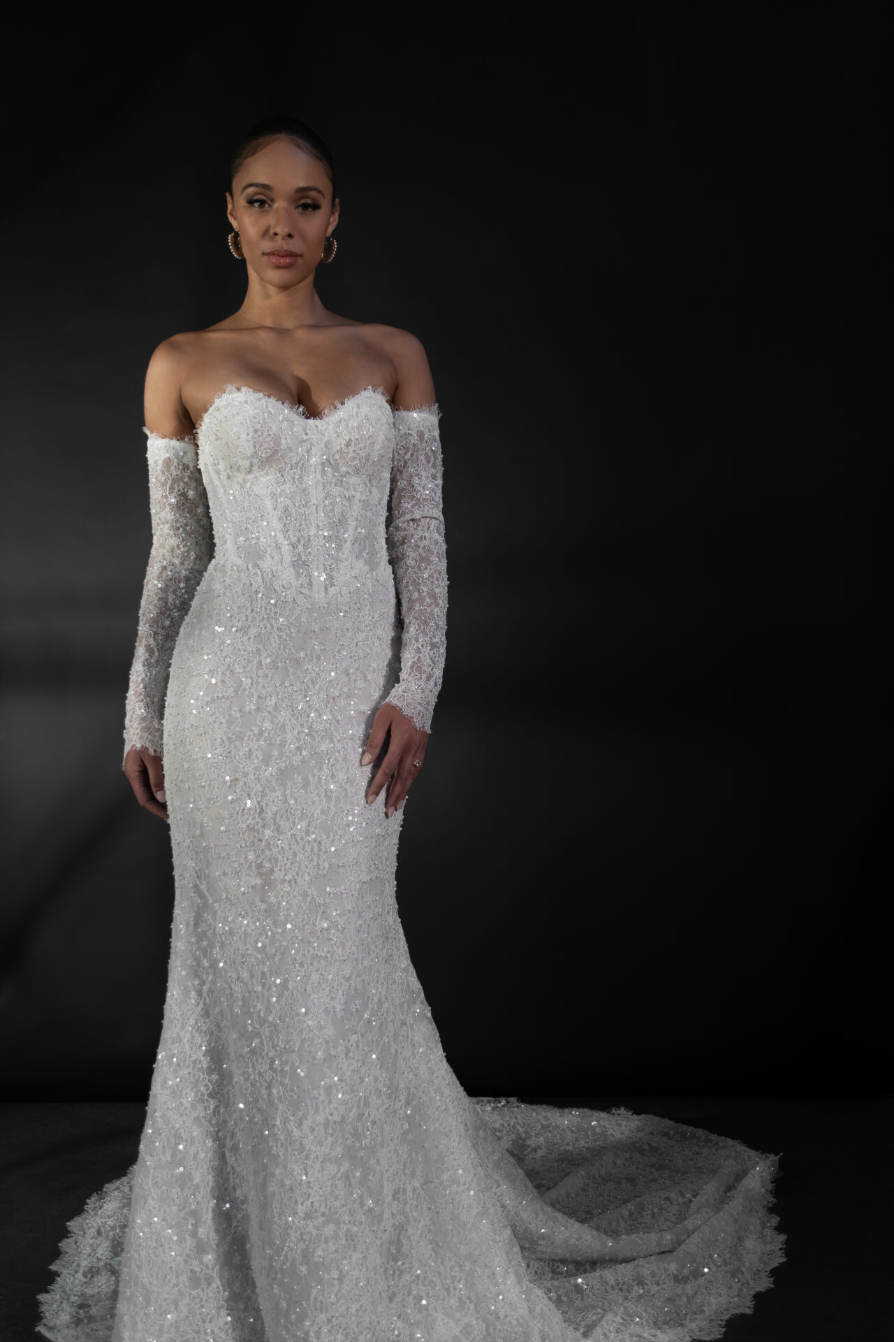 Discover a couture bridal collection where dramatic basque waist ballgowns meet fitted lace, stunning sparkle and gowns that take you from the aisle to the dance floor.