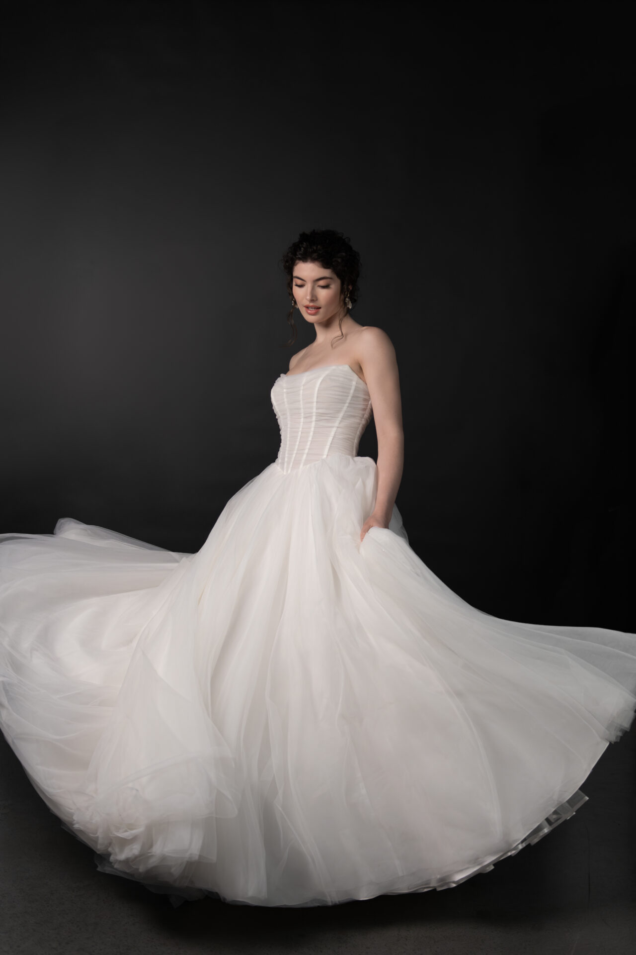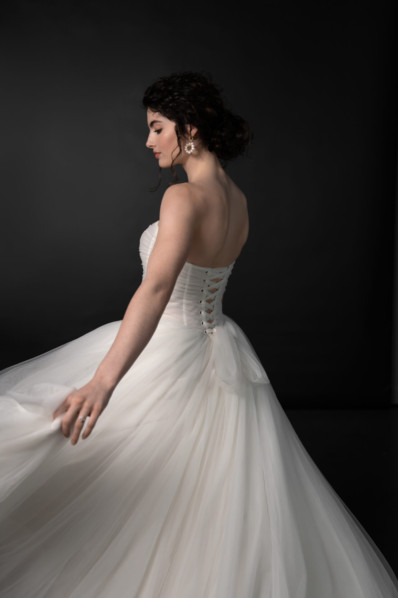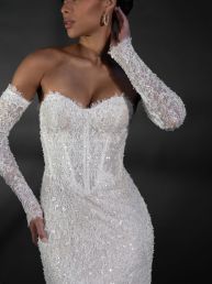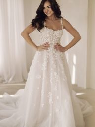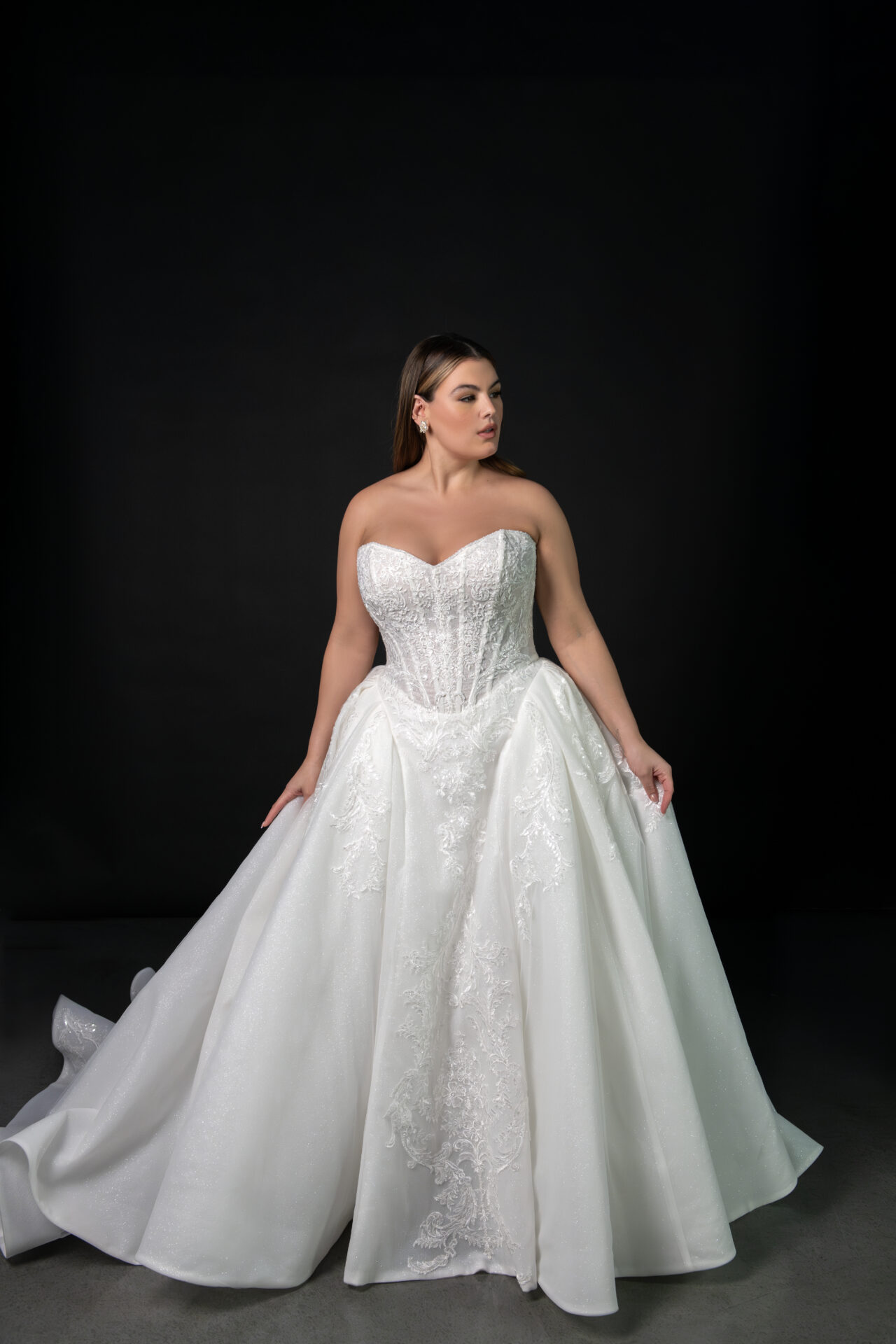 Discover a couture bridal collection where dramatic basque waist ballgowns meet fitted lace, stunning sparkle and gowns that take you from the aisle to the dance floor.